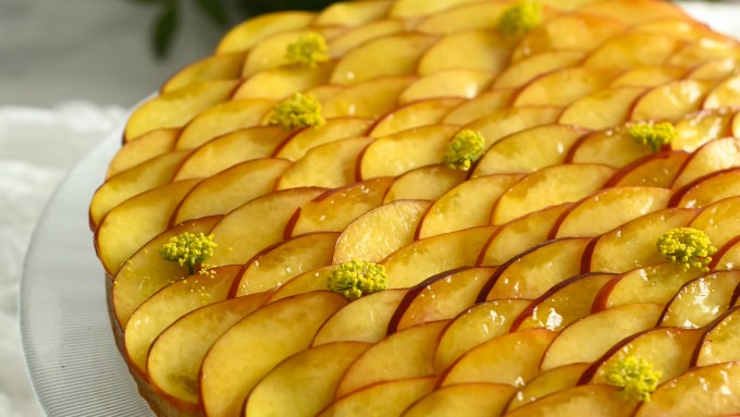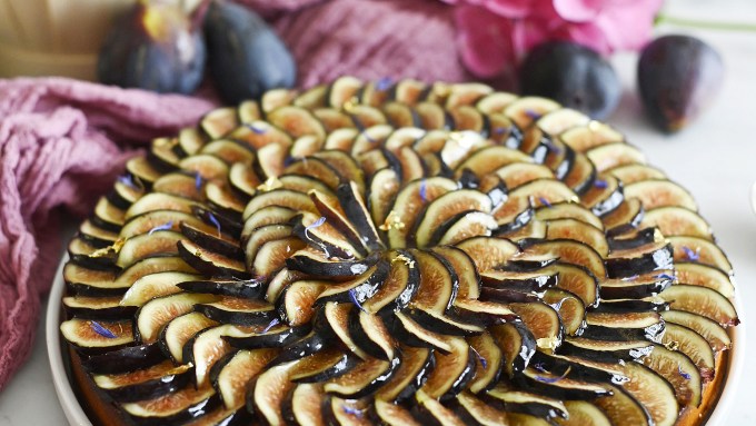 Ajoutez la compote dans le fond de tarte, sur la crème d’amandes précuite.