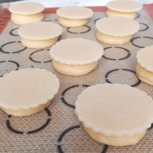 Sortez la pâte à craquelin et détaillez la en cercle de 5 cm de diamètre à l’aide d’un emporte-pièce.