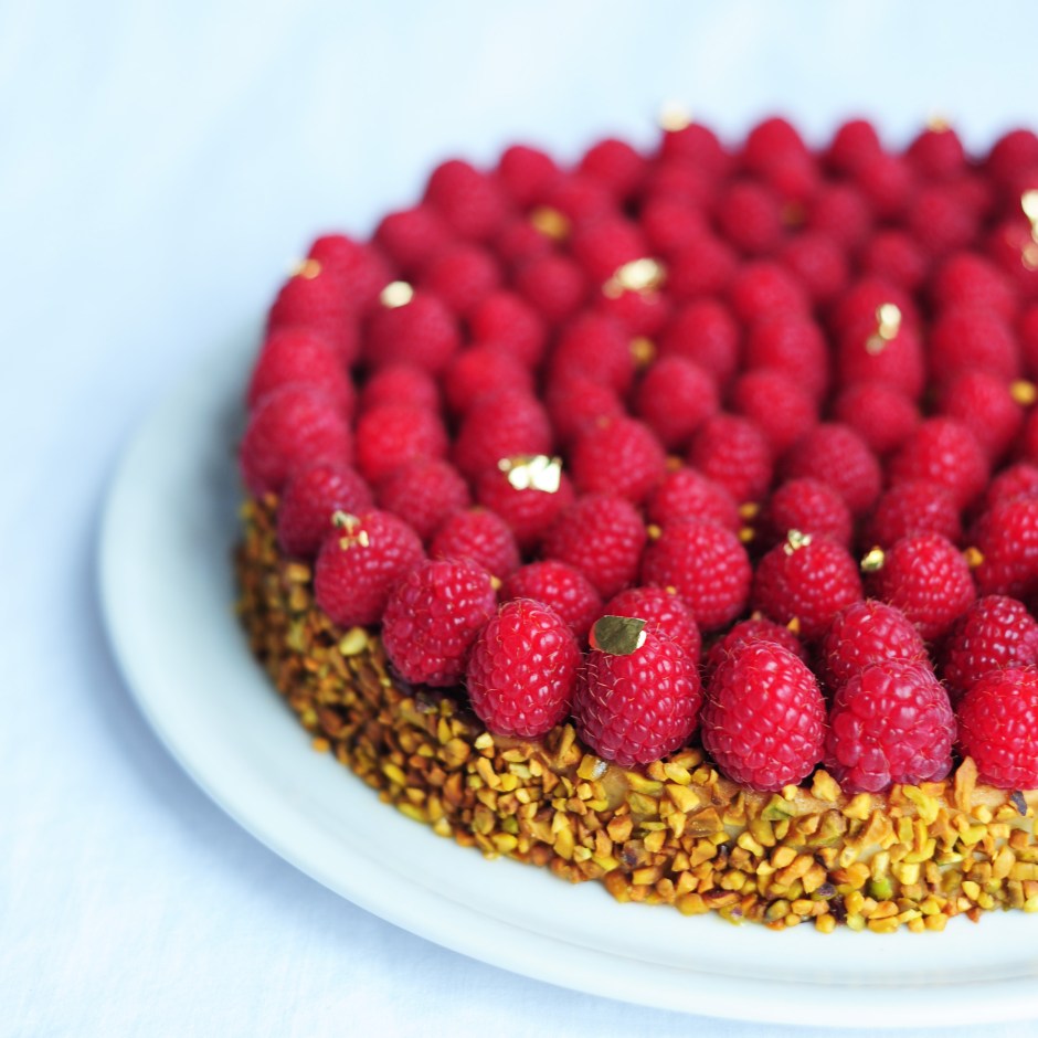 Placez une belle quantité de fruits rouges au centre du gâteau.