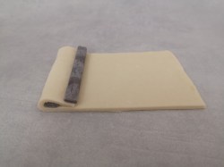 Sortez la pâte et positionnez à nouveau la pliure sur votre droite. Étalez la pâte dans la longueur, et dans la largeur afin d obtenir un grand carré. Coupez ce carré en 2 rectangles.