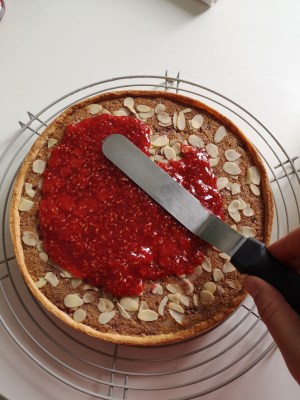 Rassemblez la pâte, formez une boule et aplatissez-là. Enveloppez la pâte d’un film alimentaire et laissez reposer 30 min au réfrigérateur.