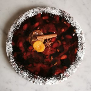 Tarte à la rhubarbe pochée