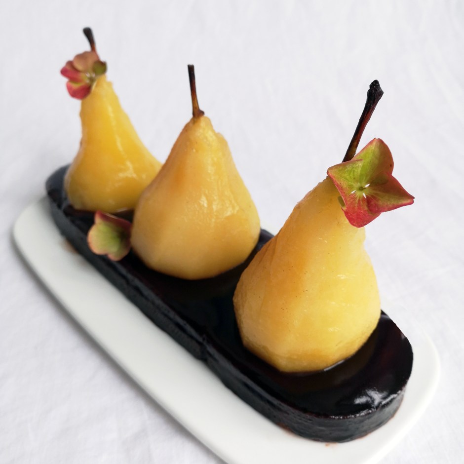 ALERTE TUERIE ! Oh là là cette tarte, mais quel délice. L’alternance des textures, des saveurs. On commence par une pâte sucrée cacao, une crème d’amandes cacao, des cerises macérées au kirsh, un crémeux chocolat et une chantilly mascarpone tonka. Allez-y les yeux fermés.