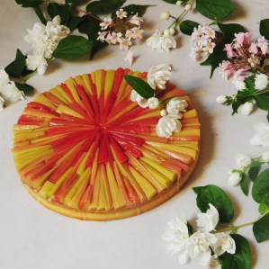 Et je me suis amusée à composer ce dessert mi-tarte mi-entremet. J’ai une fascination pour les décors que l’on peut réaliser avec un glaçage miroir (même si j’en réalise peu) alors pour la première fois, j’ai tenté le mélange de couleurs. Et j’ai déjà envie de voir les bûches de Noël arriver pour tester plein d’autres glaçages.